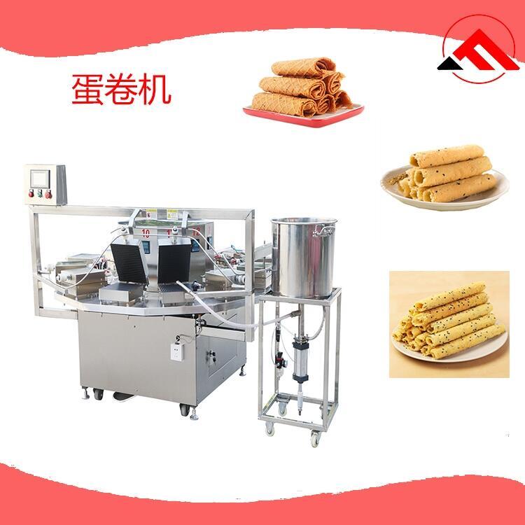 蛋卷机是食品机械设备中出现比较早的一种设备,该设备在技术的不断进步和发展中也不断的进行技术的完善,性能更加的稳定,可用于各种不同蛋卷的生产加工,并且效果非常突出。蛋卷机的自动化程度高,可实现蛋卷的自动化加工,整个生产过程简单方便,省时省力。该设备生产加工的蛋卷颜色更均匀,质量和口感更好,备受大家的欢迎。