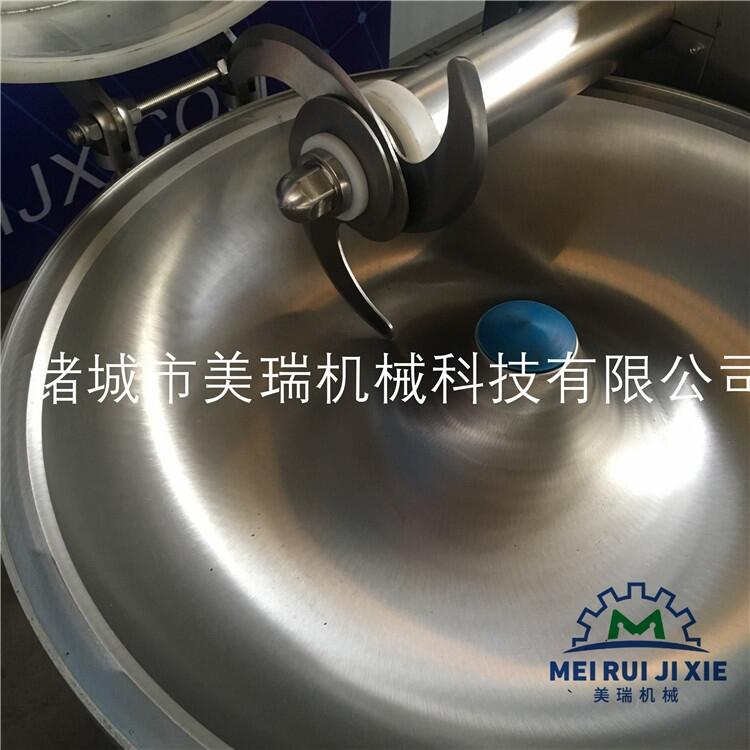 斩拌机常用于馅料的加工生产,工作时利用斩刀高速旋转的斩切作用,将肉及辅料斩成肉馅或肉泥,还可以将辅料、冰片、水与肉馅或肉块一起搅拌均匀。采用变频技术,刀速调整范围大,具有高效节能的功能,刀速、锅速、斩刀与斩锅的间隙、斩刀材质和刀的硬度设计最为合理。