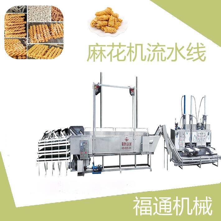 麻花生产流水线有多个设备组成,从麻花的成型,油炸,到出料冷却,整个生产加工过程,是麻花生产加工的主要设备。该流水线设备有麻花机、提升带、油炸锅、冷却带组成,其中的麻花机可根据用户的需求选择不同型号的麻花机设备,满足不同用户的加工需求。