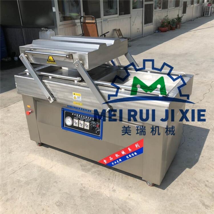 双室塑料袋封口机 商用熟食包装机 五谷杂粮真空包装机使用方法很简单,主要是根据客户产品包装袋的不同选择好合 适的抽气时间、加热时间和冷却时间,调试过程中可参照真空表显示的数字。 大米真空包装机具体操作方法:将大米放入真空袋之后,将包装袋放于大米真空包装机真空室中,袋口整齐的放到加热板上,并用压条压住,调节好时间和加热温度(主要有低、中、高)三档,合盖抽真空即可。
