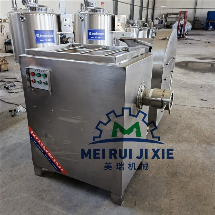 冻盘肉的种类很多,鸡肉、猪肉、鱼肉等都可以做成冻盘肉。冻盘肉常用于生产丸子、灌肠等肉质制品。现在很多人都会说冻肉比鲜肉干净,这是为什么呢?我来给大家解释一下吧,因为冻肉不容易滋生细菌。大型生产线在制作肉质品时往往都会选择使用冻盘肉,制作肉制品通常需要多道生产工序,采用冻肉作为原材料,能够更好的保证食材的新鲜及食品的安全卫生。我公司生产的绞肉机可以直接绞制冻肉,每小时产能可达500-5500kg/h,可以很好的满足大中小型生产厂家的需求。