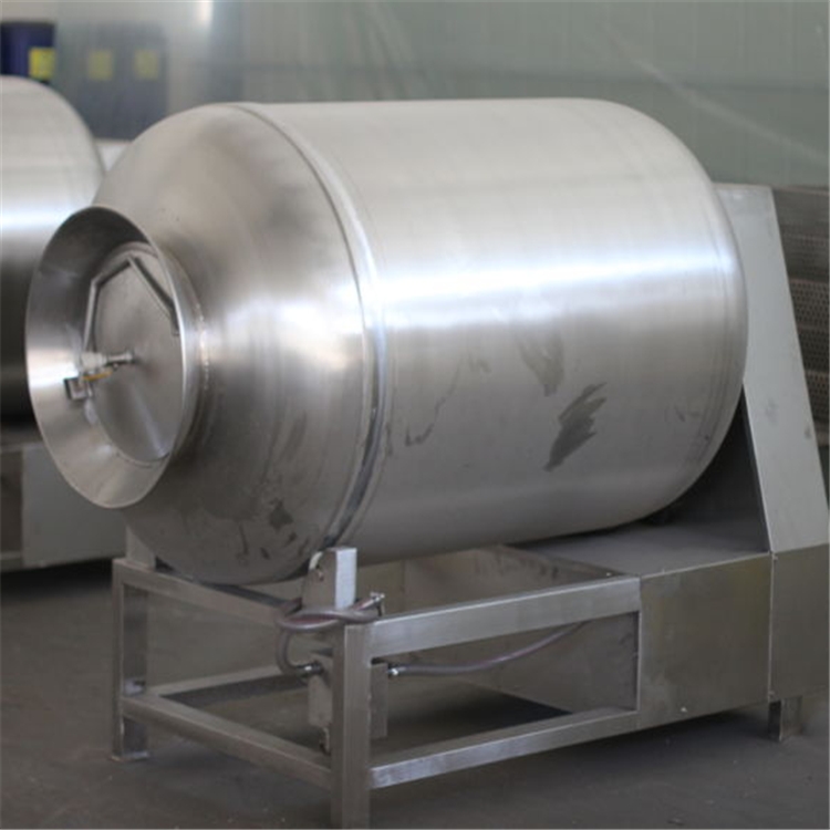 2.滚揉机是在真空状态下,利用物理冲击的原理,让肉制品在滚筒内部上下翻动,相互撞击、摔打,起到腌渍的作用,使肉制品均匀的吸收腌渍,提高肉制品的结合力及产品的弹性。,通过滚揉能使肉体蛋白质分解成水溶性蛋白,易被人体吸收,同时能使添加料(淀粉等) 与肉体蛋白质相互融合达到肉质变嫩、口感好、出品率高。