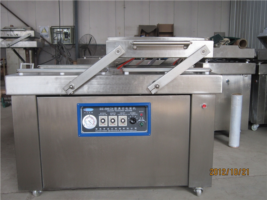 4.真空包装机:我公司生产的DZ-600真空包装机,它具有防水、防潮、故障率低、使用寿命长等优点,架体采用国际标准食品用304不锈钢板,强度高,不易破损。上海第二真空泵厂真空泵,具有放水、防尘、记忆准确的公司专属电脑版。新式加热装置,进口加热条、隔离布、属公司。整机材质为304全不锈钢,工作室、台板为4mm厚。设备具有移动和固定刹车装置。电器为浙江正泰、电磁阀为温州大昌。密封垫、封口条为天然硅胶。