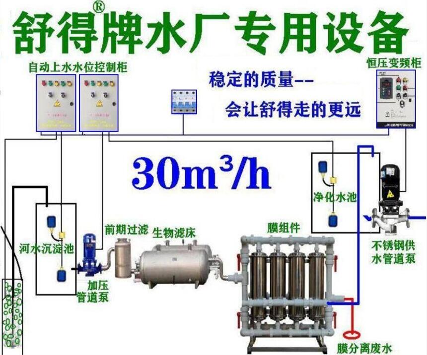 亮点⑧、 配用舒得一体净水设备净化水无菌水生产线,水厂再也不会出现因为突如其来轻微污染、而引起供水方面出现全城及周边居民水荒现象发生、道理很简单轻微的污染对舒得生产的集物理过滤生物净化生物软化膜分离于一体的净水设备来说是不会被动的,中小微自来水厂考虑配置我司设备,一次性投入长期受益,省时省事20年。
