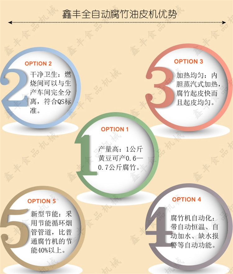 一机多用:可同时生产果蔬彩色豆腐系列产品单色(嫩,老)豆腐 多彩豆腐 单色豆腐皮 多色豆腐皮 彩色豆腐干 多彩色素鸡 豆浆 豆腐花等豆制品制作,还可以与其他设备和工艺配套生产更多的豆制品。