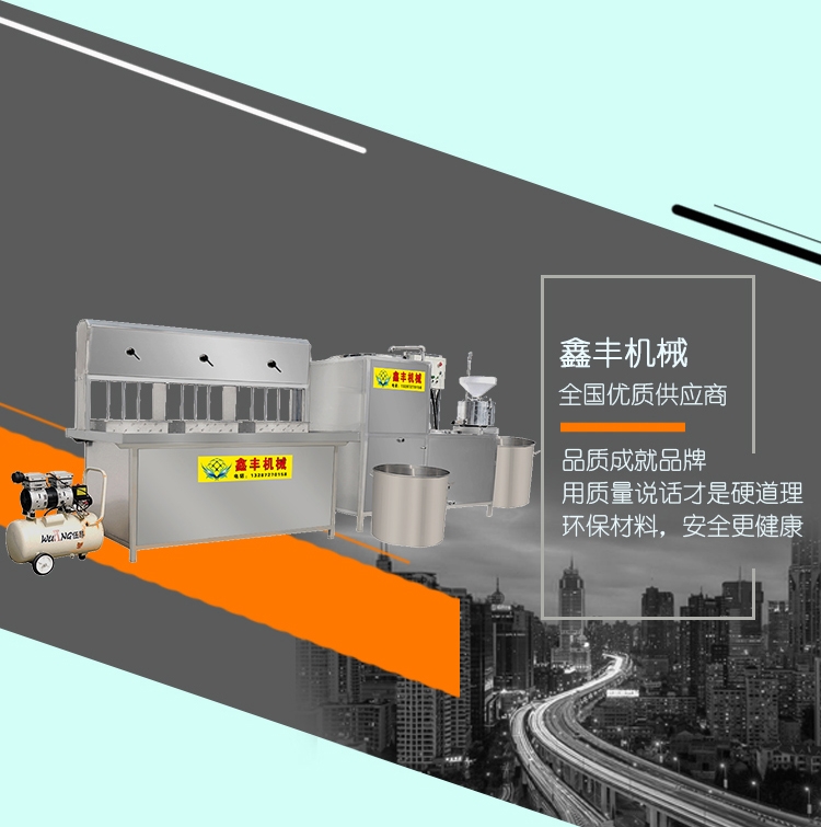 与传统的做豆腐的方法相比,现在豆腐机的使用会提高更高的效率,节省很多的时间。豆腐机是把大豆做成豆腐,豆浆等一些豆制食品的机械。豆腐机由分离式磨浆机、盛浆桶、盛渣桶、蒸汽包等组成,自动加水由液位控制器和电磁阀控制蒸汽包水位。