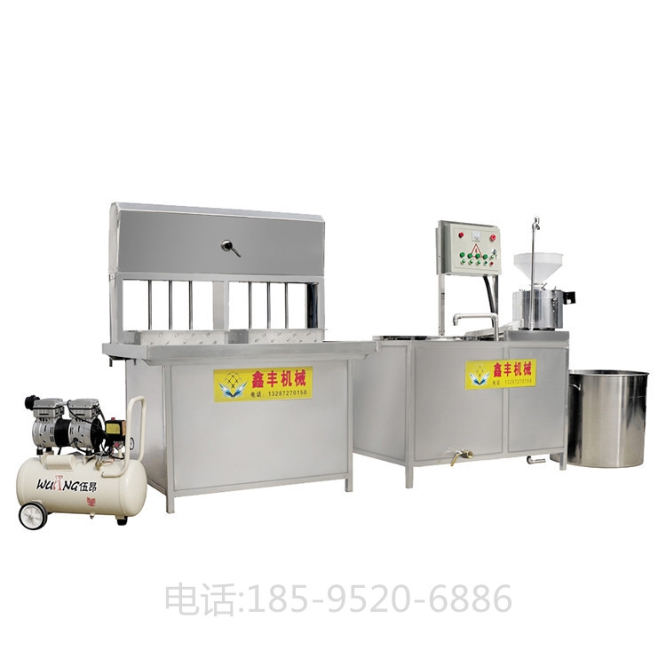 与传统的做豆腐的方法相比,现在豆腐机的使用会提高更高的效率,节省很多的时间。豆腐机是把大豆做成豆腐,豆浆等一些豆制食品的机械。豆腐机由分离式磨浆机、盛浆桶、盛渣桶、蒸汽包等组成,自动加水由液位控制器和电磁阀控制蒸汽包水位。可同时生产豆浆、豆花、各式豆腐等多种豆制品,还可以与其他设备和工艺配套生产更多的豆制品。