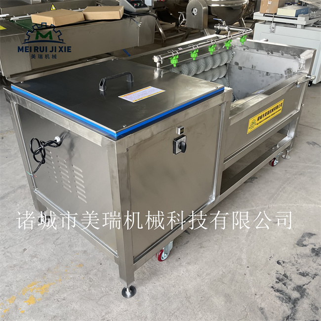 山芋清洗机 美瑞山芋去皮机 红薯毛辊清洗机只有在蔬菜清洗机日常操作使用过程中不但可以提高设备的生产效率、将产品直接接触产生摩擦达到去皮、清洗的效果;可达到 根茎类果蔬清洗去皮 去 残留.整机加厚304不锈钢制作,设计有自动高压喷淋喷头进行边去皮边冲洗,还可以更好的延长设备的使用寿命。多注意一些保养细节,使用注意事项,不管什么机械设备,坚固耐用。滚轮四点职称,移动方便。三分靠修,七分靠养。