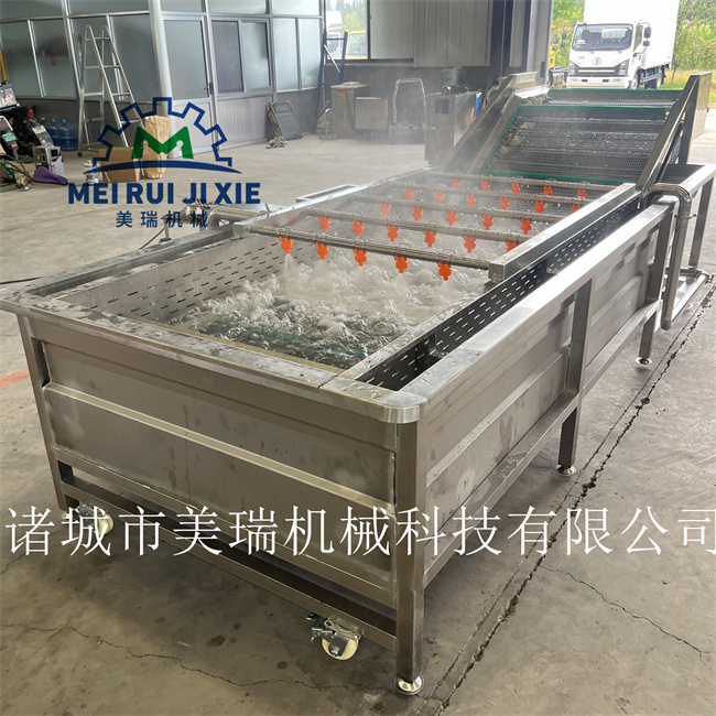 大型果蔬清洗机 蔬菜气泡清洗机 蘑菇清洗流水线是一款主要应用于清洗蔬菜的机器。主要针对根茎类的蔬菜的用户可根据工艺要求任意调整网带速度,从而使被清洗物得到清洗。清洗,操作简单,维修方便,该设备可根据客户要求增加臭氧杀菌,高压喷淋及毛刷去杂功能。整体采用不锈钢制作,方便连线。本机水槽主体不锈钢采用2mm厚不锈钢制作而成。也可适用于苹果、梨、柑桔、芒果等水果的清洗。有去皮、抛光的作用。如:土豆、山药、马铃薯等块茎类的清洗,