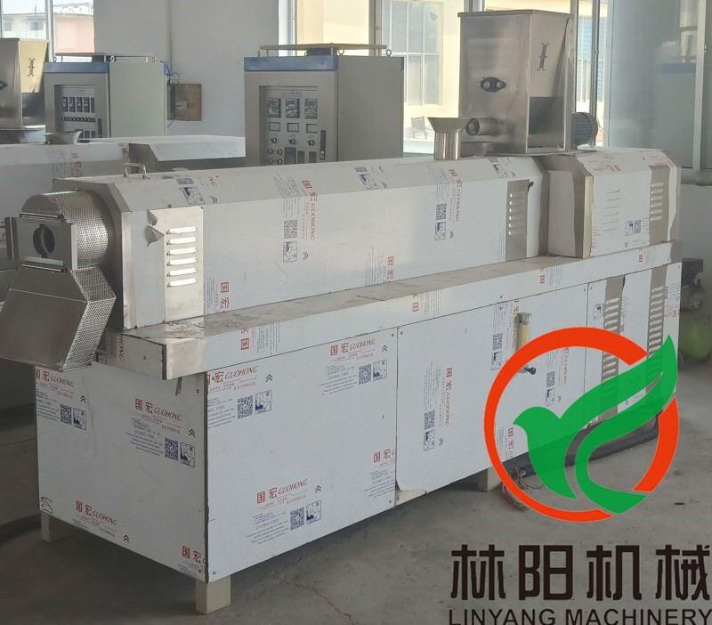 3、膨化机:喂料斗里的原料进入挤压系统内,生产出小球状颗粒。