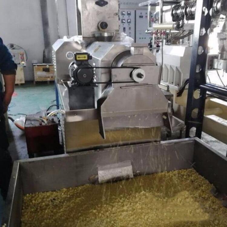 3、膨化机:喂料斗里的原料进入挤压系统内,生产出小球状颗粒。