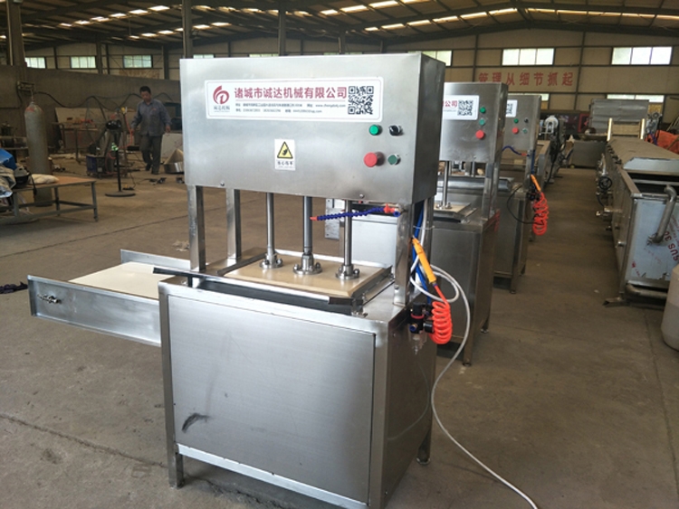 2、千页豆腐切片设备采用双气缸压力系统,保证了充足动力,不会出现压偏,压力不匀现象,动力充足,可以延长设备使用寿命。
