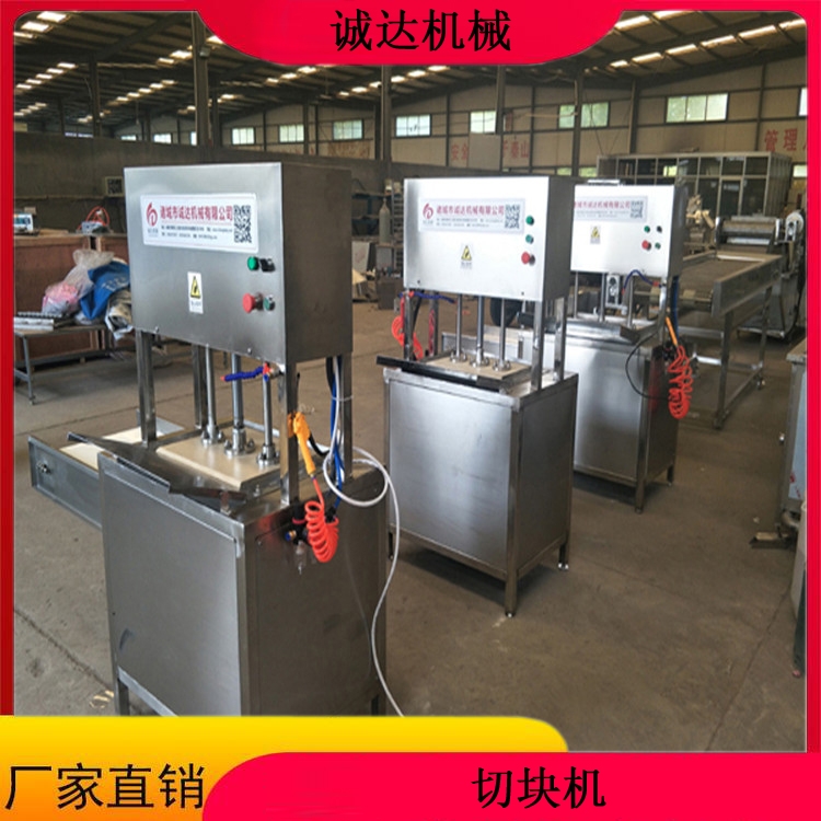 新型千页豆腐机切割设备,诚达科技为用户提供多款。本机可对千页豆腐,鱼豆腐,QQ豆干及相关特性的物料进行专业切割,还可切割成丁,丝,条,片,块,三角形,菱形等多样化。我公司切割设备的型号有:单机,传送带,推拉式,切割+提升,全自动型。