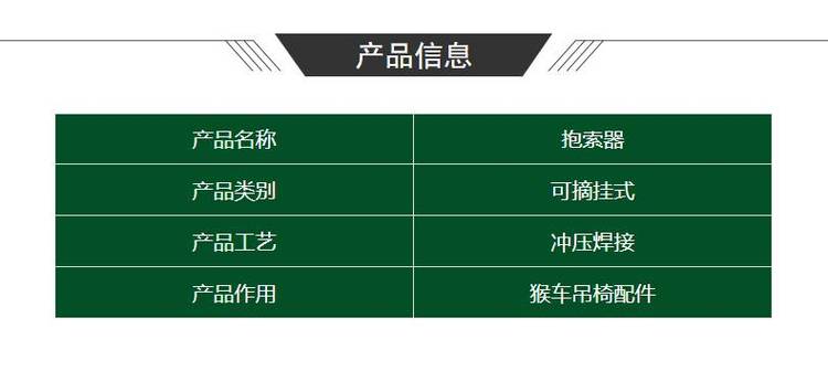 作用 | 使吊椅简单方便的挂在钢丝绳上 | ||
