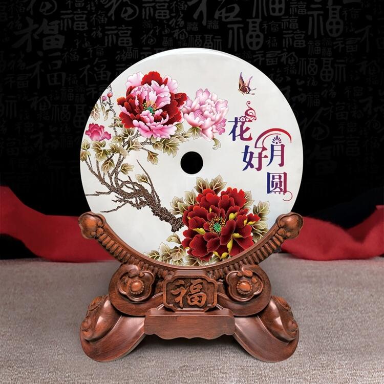 玉石平安扣摆件 厚德载物装饰品摆件