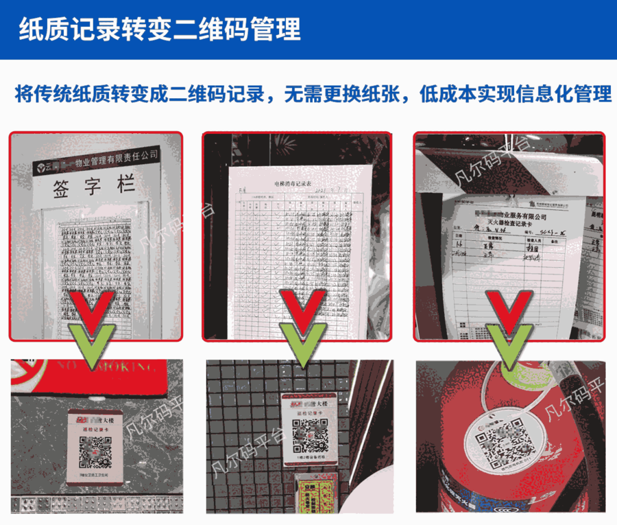通过凡尔码平台实现消防日常防火巡查系统搭建,将防火巡查点罗列生成二维码,粘贴现场;微信扫一扫即可实现巡查管理;