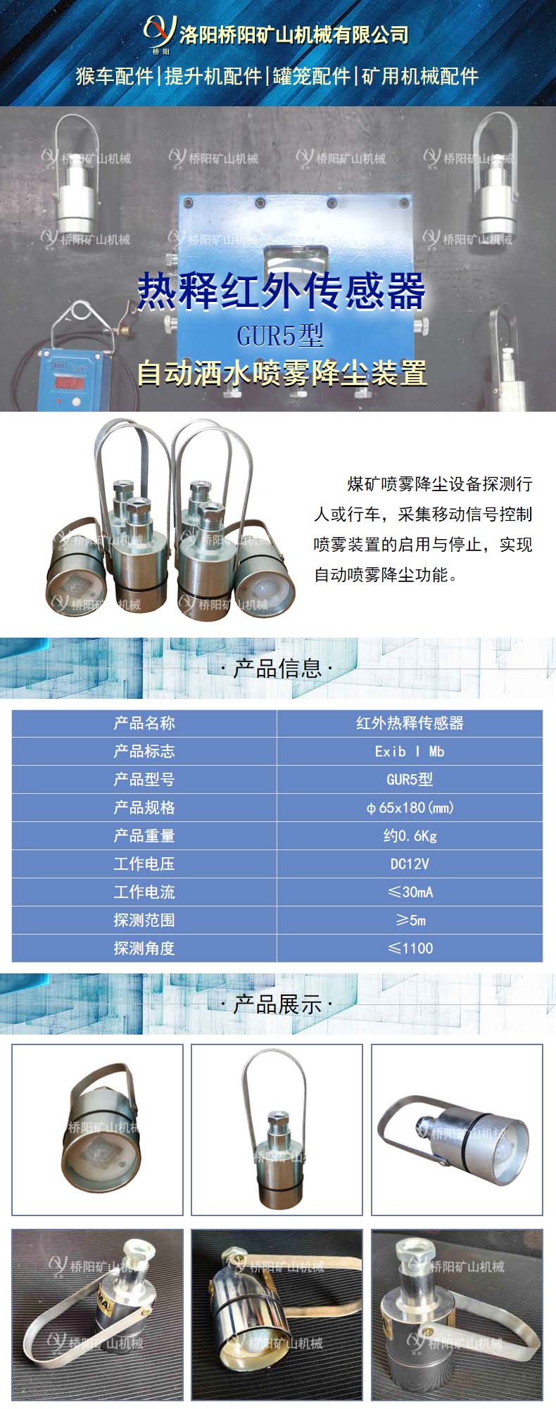 装载机用GUR5热释温控传感器人体传感器用途:用于煤矿井底车场、猴车沿线等场所作人员检测用,实现声光报jing或语音提示,提醒现场人员注意安全。