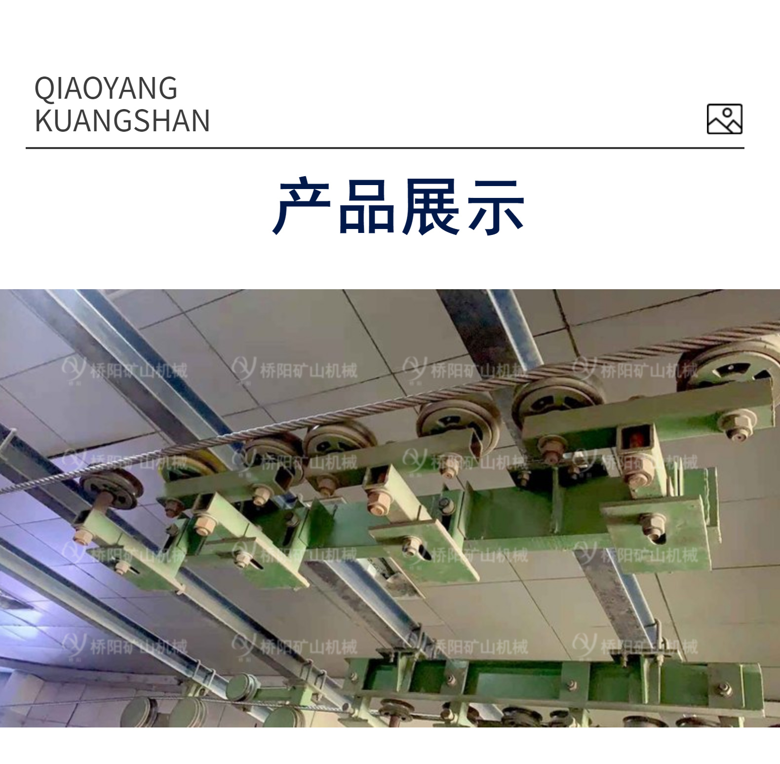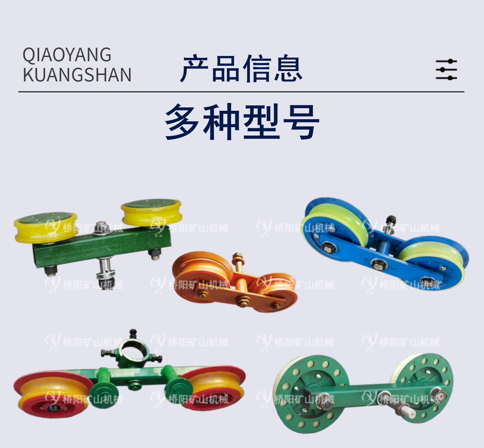 双托轮安装于矿山斜井下猴车上,起到托绳的作用,适用于长距离巷道人员、货物的运输,可实现人员静止上下车和大角度的水平转弯。每个单托轮约承受120kg重量,变坡点托轮随钢丝绳张力与变坡角度大小不同而不同,zui大可达550kg。 因此,直线段采用单托轮,变坡点根据受力大小的不同采用双托轮和双压轮。