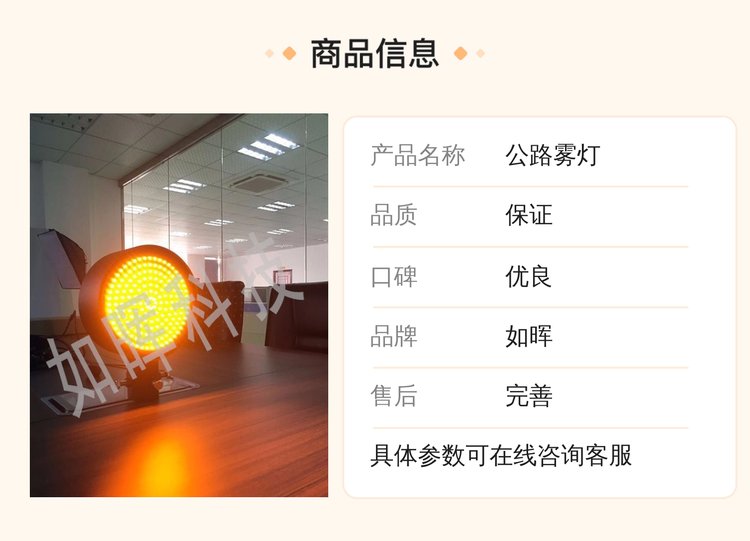 如晖公路雾灯>300米可视距离IP65防水防尘售后完善品质保证