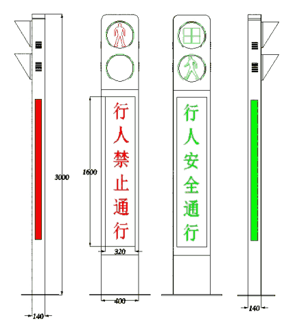 8.可扩展行人过街闯红灯提示桩,安装在斑马线两侧,一个路口安装8对
