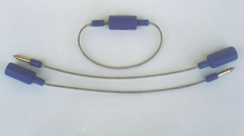 结构特征:此产品为钢式车件组装而成,呈挂锁形状,可热压或激光点印、公司标志或名称、编码,锁头外包ABS塑料、易安装,锁后可用专制钢丝剪移除。钢绳直径4mm,总长7.2cm。