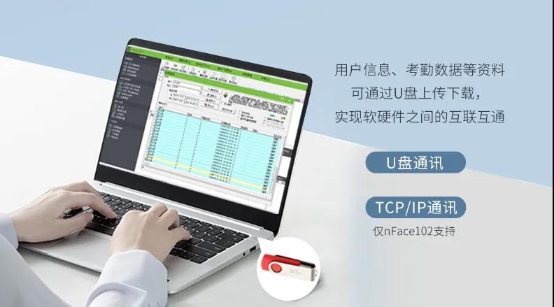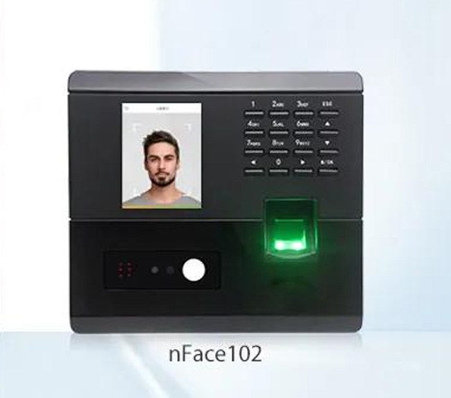 nFace102是中控博业推出的一款多光谱智能人脸识别终端,采用可见光人脸识别算法,产品自带补光灯,光线适应度高,可以更好的适应光线环境的影响,提高人脸识别准确度,增加用户面部登记比对体验;拥有双目红外摄像头,2.8寸高清彩屏体验,实现人员身份快速验证;SSR自助式考勤功能可一键导出考勤报表,支持TCP\IP、U盘通讯方式,兼具门磁、、出门开关等门禁管理功能,可满足大众化需求,实现时间和安全的高效管理。