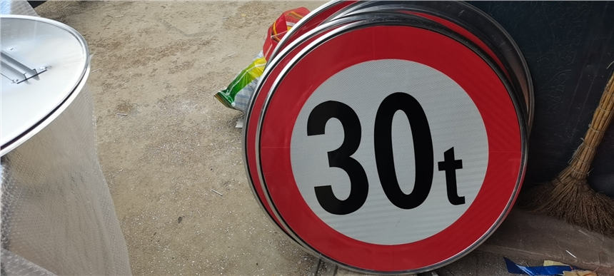 材质特点:1.00-3.00mm铝板厚度,背面安装铝槽(供固定时使用),正面贴反光膜。夜晚反光效果好。