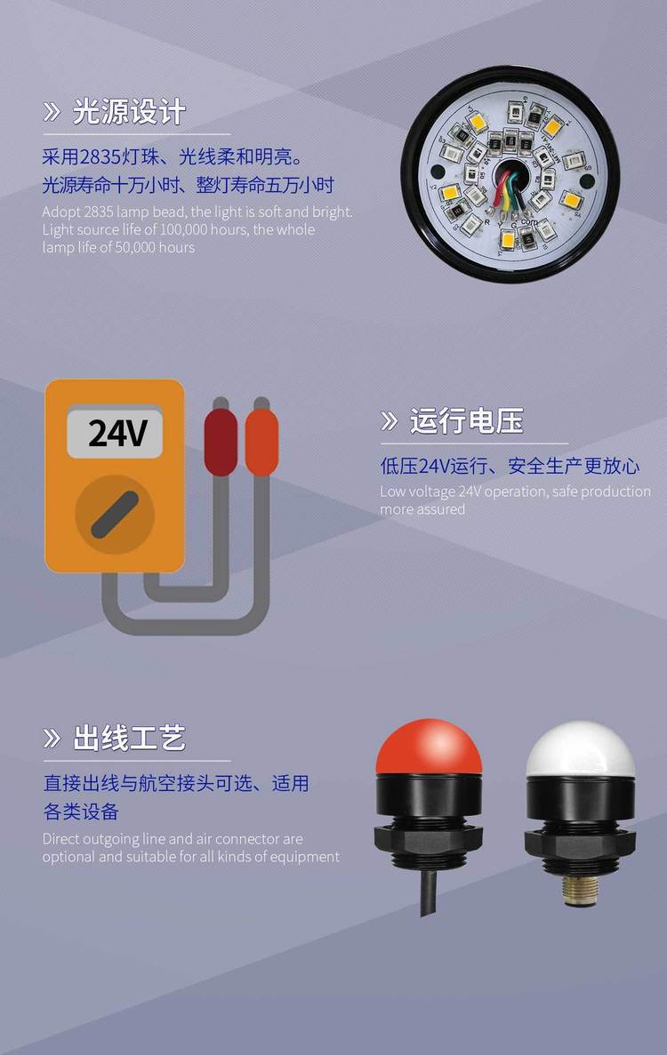欧恩圆形三色报警灯M4B-30小型指示灯设备警示灯IP67高防护12\/24V