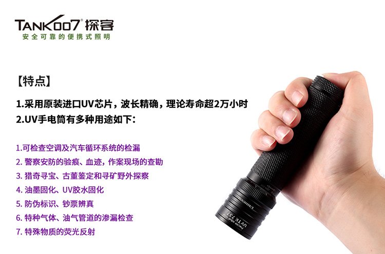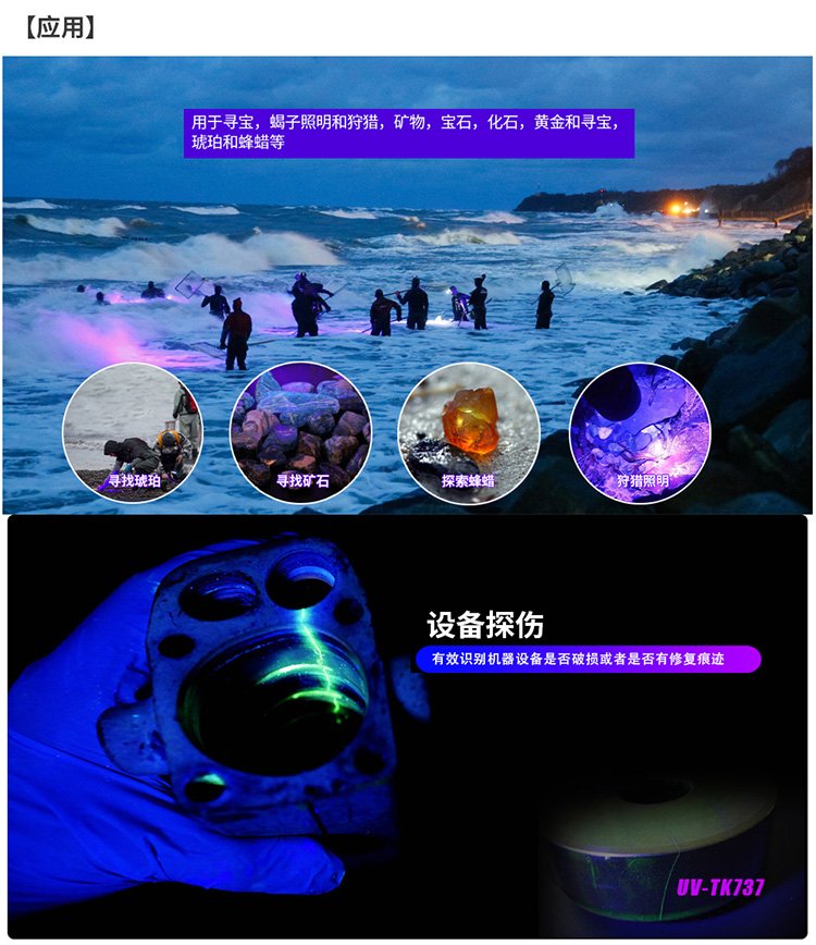 适用环境 | 蜜蜡琥珀检测、防伪检测、寻矿、油墨固化 | ||