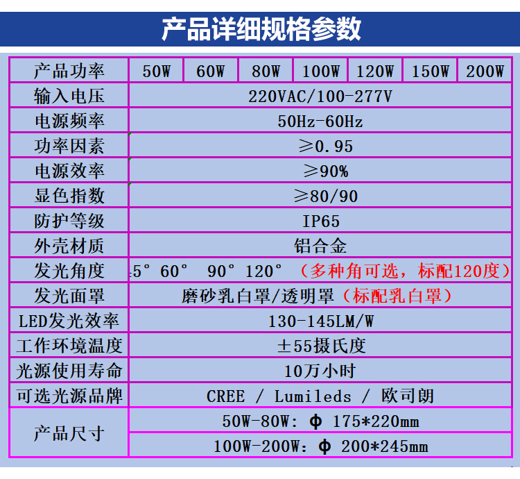 功率 | 150W吊装筒灯 120W吊装筒灯 100W吊装筒灯 80W吊装筒灯 60W吊装筒灯 50W吊装筒灯 | ||