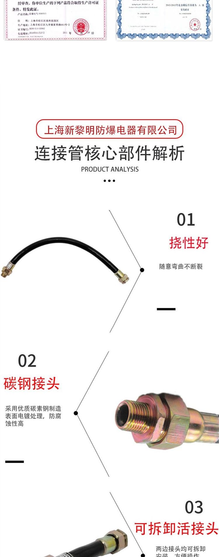 防爆挠性连接管防爆软管304不锈钢钢丝编织碳钢软管定制