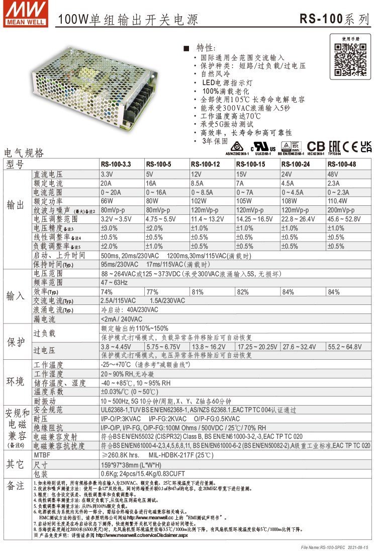 型号 | RS-100-24 |