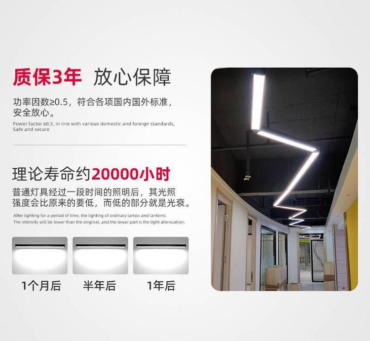 超麦办公室吊灯 方通led长条灯 餐厅吊线灯5/7/10/20宽照明灯 功率 | 48w | ||