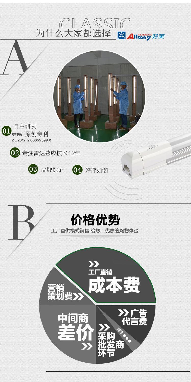 好美移动感应灯管 0.6米 T8转T5微波感应灯管 双亮度智能感应车库支架灯 节能点亮模式雷达感应支架灯管以上均由中山市好美科技照明有限公司www.tmallled.cn提供