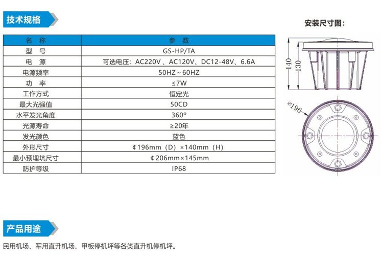 产品特性 | 停机坪灯 | ||