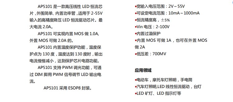 LED 线性恒流驱动,台灯 LED 矿灯、LED 指示灯等 | |||
