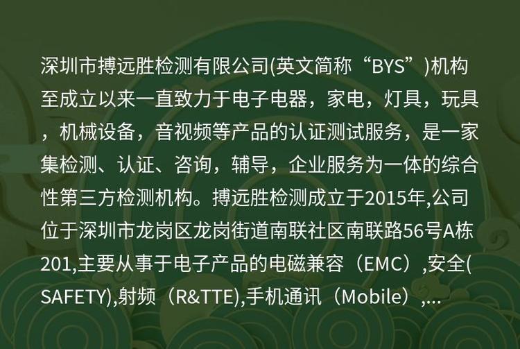 深圳市搏远胜检测有限公司 智能客服智能客服在线解答,若涉及资金打款事宜,务必与厂家进行电话确认。