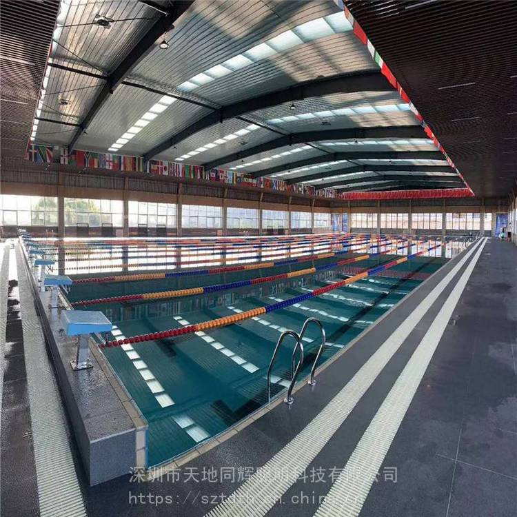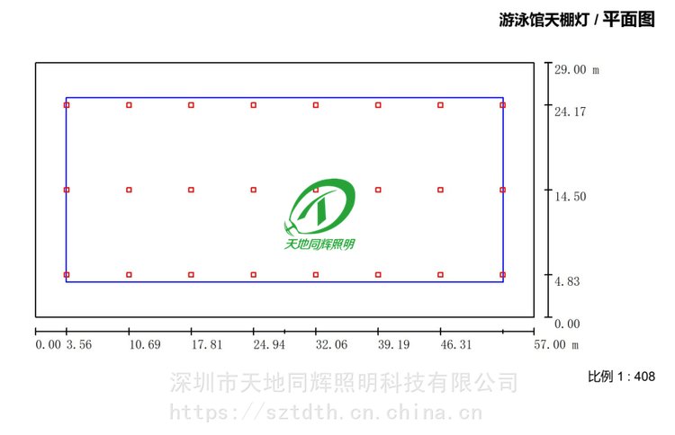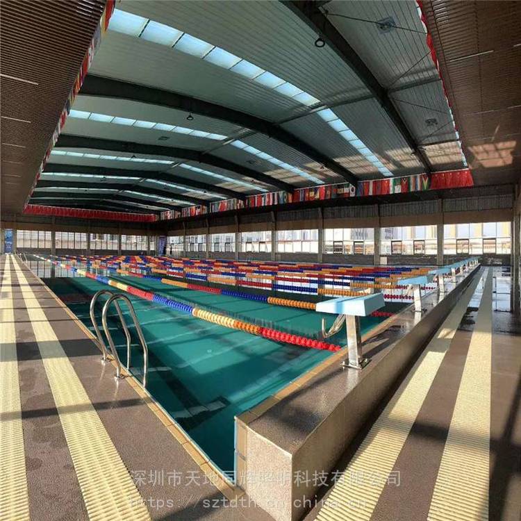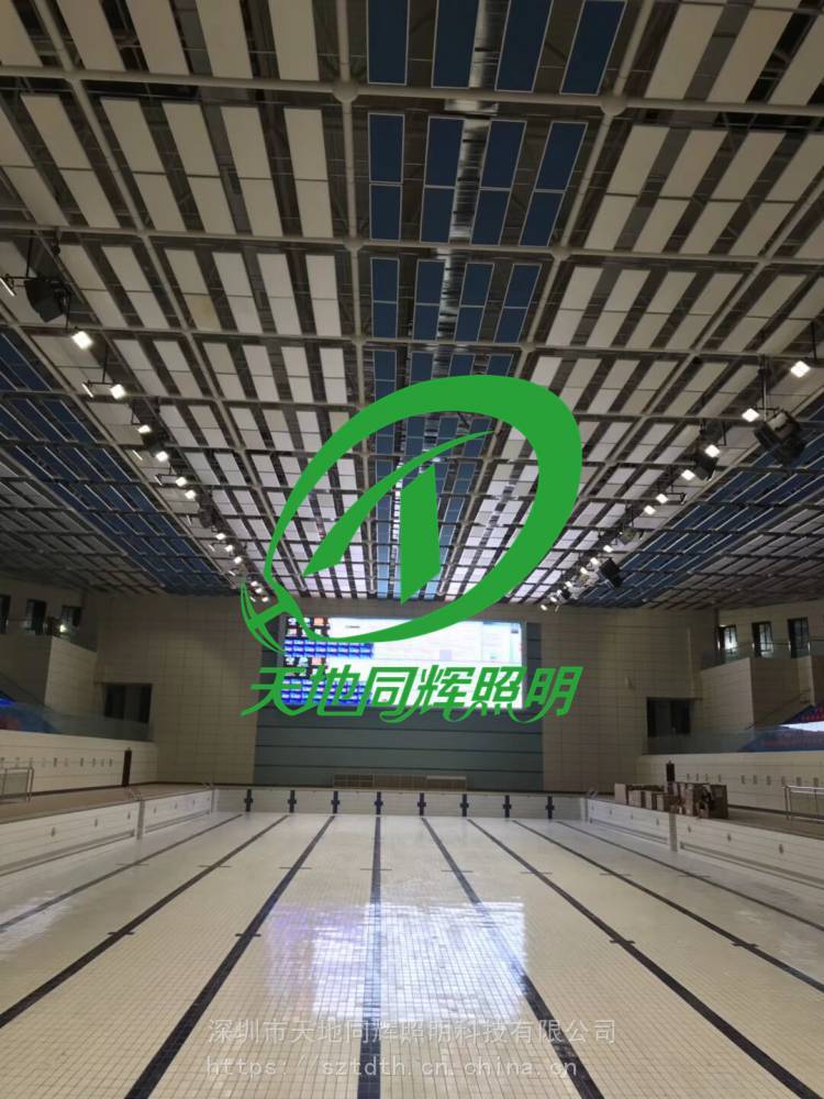 3、马道悬挂法:在泳池顶部设立马道灯具分场地照明灯和观众席照明灯,这样能较大程度的 场地和观众席的照明。