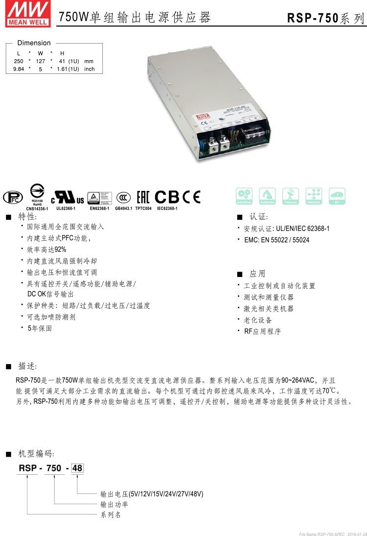 型号 | RSP-750-5 |