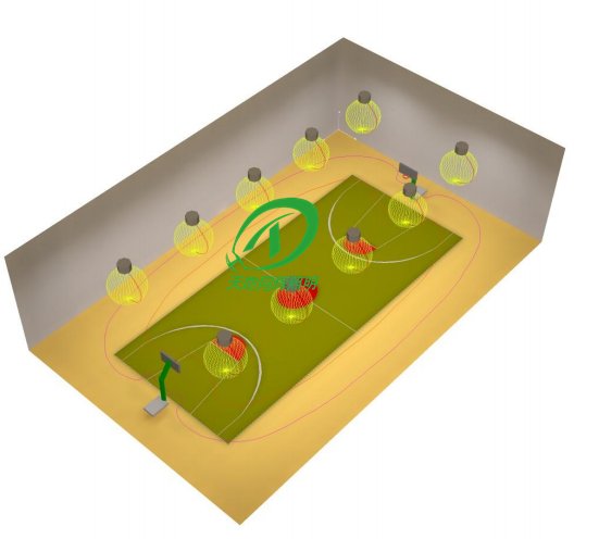 由于幼教篮球场地一般都属于室内场地,并且高度一般都在5米以内,所以不宜 太大瓦数灯具。