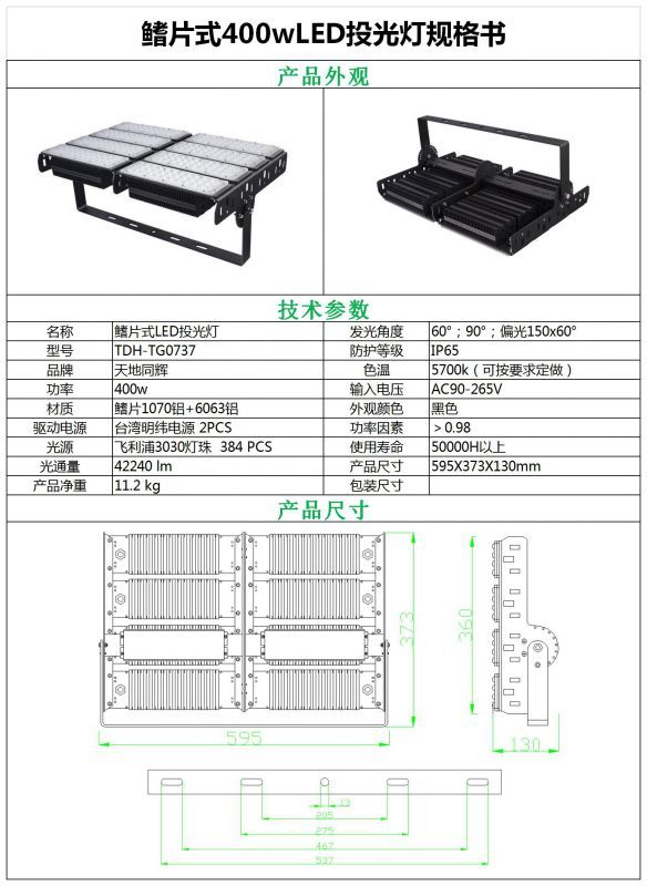???传统足球场采用传统灯具一般为1000W及以上金卤灯投光灯,为响应建立节能减排型社会的要求,LED照明灯开始在迅速进入人们的视线,LED作为节能照明设备,越来越受到人们的关注。本人根据相关球场工程的安装案例特设计足球场的LED照明替代传统金卤灯的相关方案供大家参考。400WLED灯即可替换1000W金卤灯,亮度有过之而无不及。