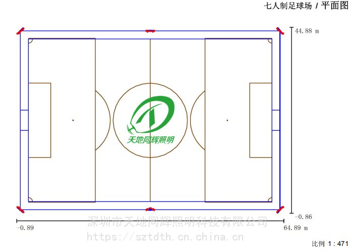 足球场平面示意图(JGJ153-2016田径场灯具安装位置确定):