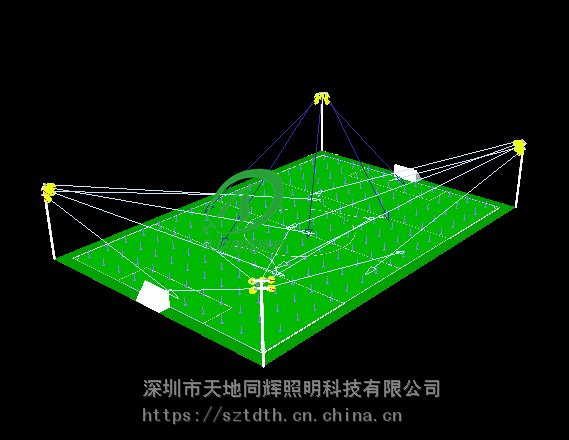 ????场地装灯位置可安装于看台顶棚边缘、二种方式为装与立杆上方,立杆安装于球场四周;又根据不同球场对照明要求不同来确定布灯数量和功率大小;下面分别列出一般足球场高杆布灯方式: