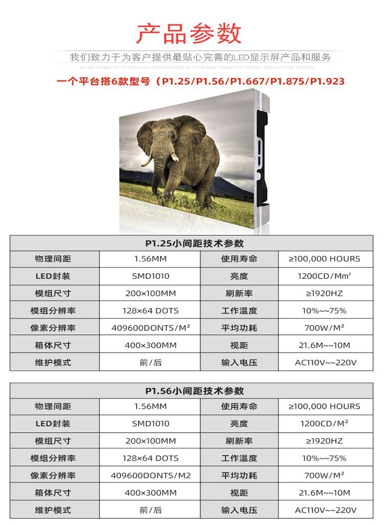主打P1.667 P1.875 P1.923 P2超高清4K级别LED显示屏