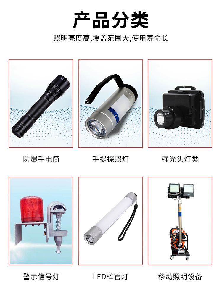 适用环境 | 铁路、航运、部队、警察和工矿企业及各种野外工作、急难救助、定点搜索、紧急事故处理等场所作移动照明和信号指示 | ||