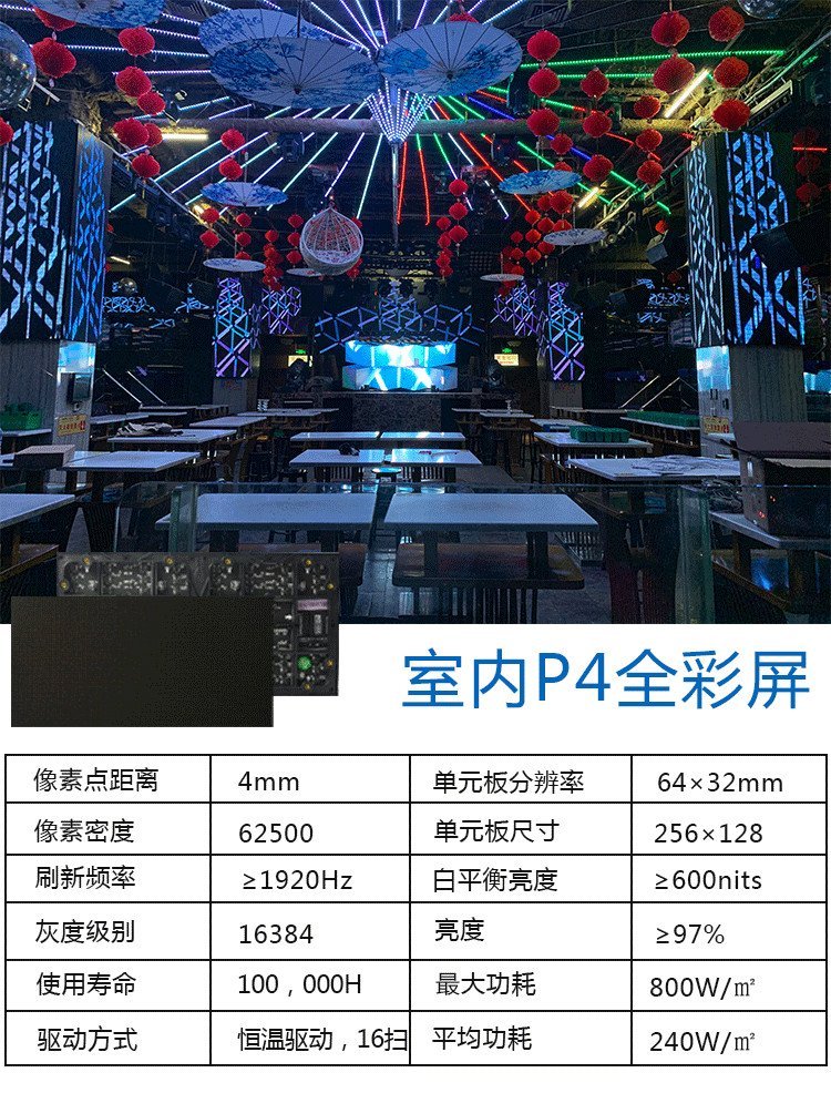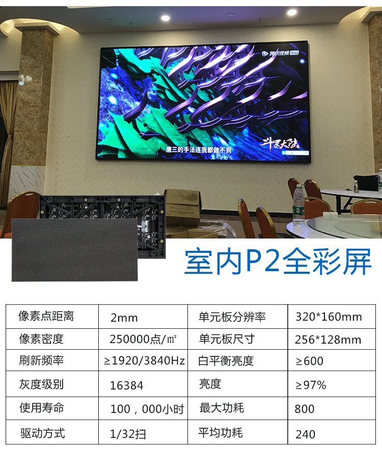 酒店p3全彩LED屏内容丰富,可显示文字、图表、图像、动画、视频信息;模组可由用户任意编排显示模式;内置有防雷装置,防止显示屏因被雷击中而烧毁;