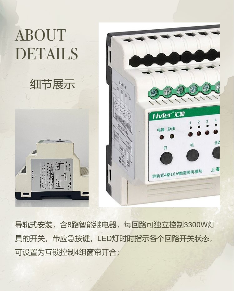 8路16A智能照明控制模块HLR01-0816A/8路16A模块 品牌 | 汇勒 | ||