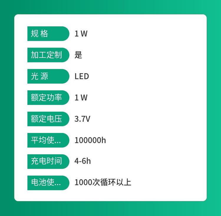 连续放电时间 | 强光I≥2h/强光II≥10h/工作光≥20h/弱光≥50h | ||