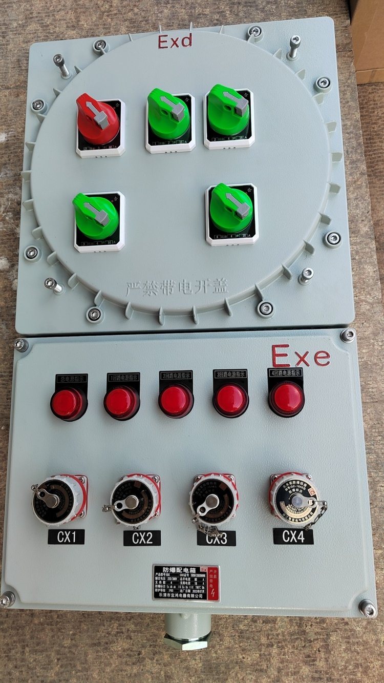 空箱;箱体尺寸多大,开多少个通头,通头开多大,隔爆型还是增安型,穿线接线用增安型,放电器、电源适配器之类用隔爆箱,增安型不允许有产生火花的电器在里面;隔爆型没有限制,可以放产生火花的电器。