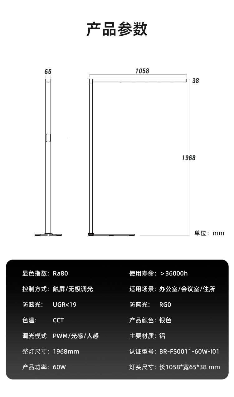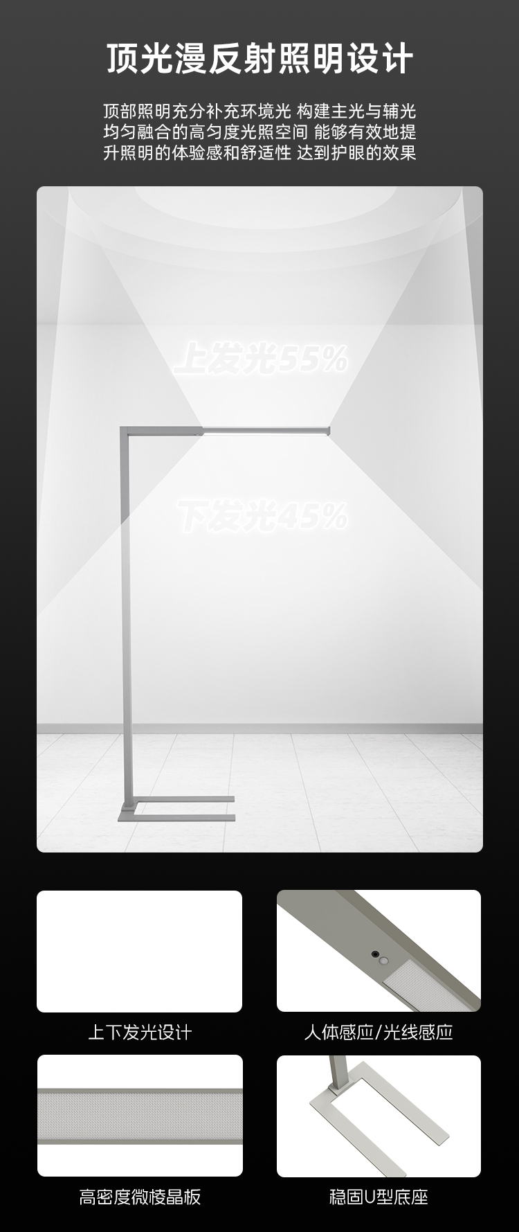 比尔落地灯护眼学习用灰白太空铝材PMMA防蓝光护眼灯落地大台灯